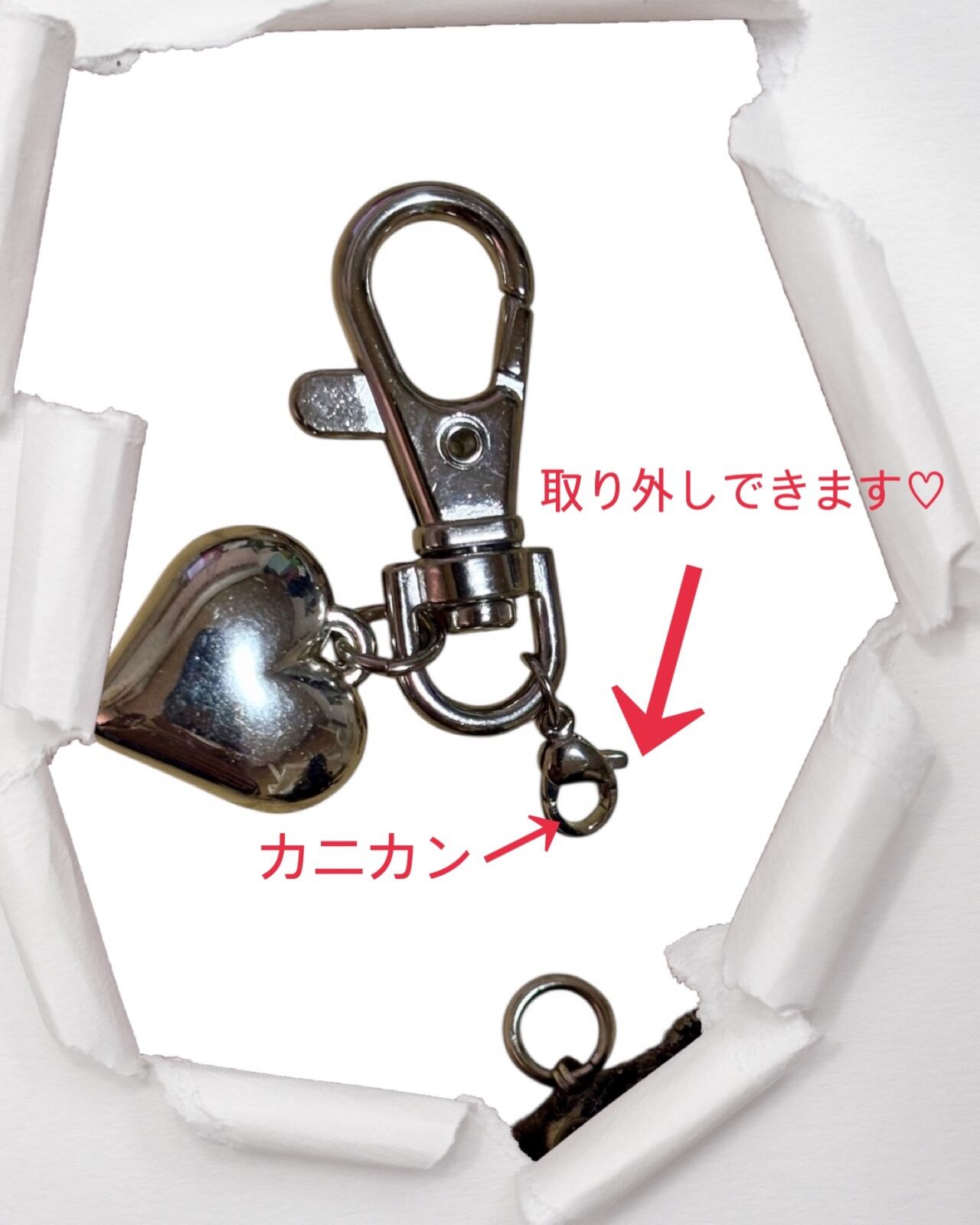 カラビナにはカニカンをおつけして、取り外し可能なデザインにしました♡