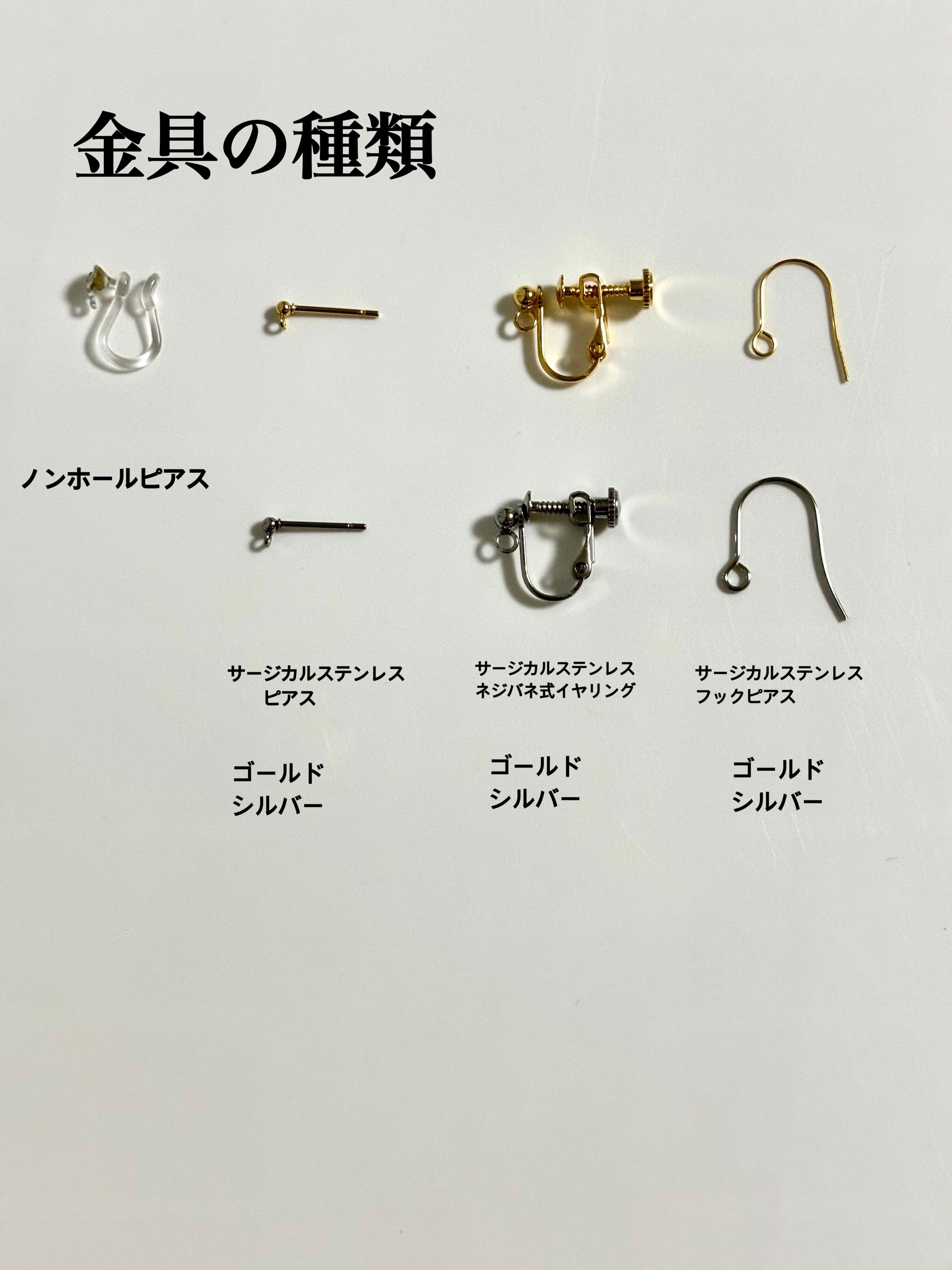 ピアス、イヤリングに変更希望の方はサージカルステンレスをご用意しております。